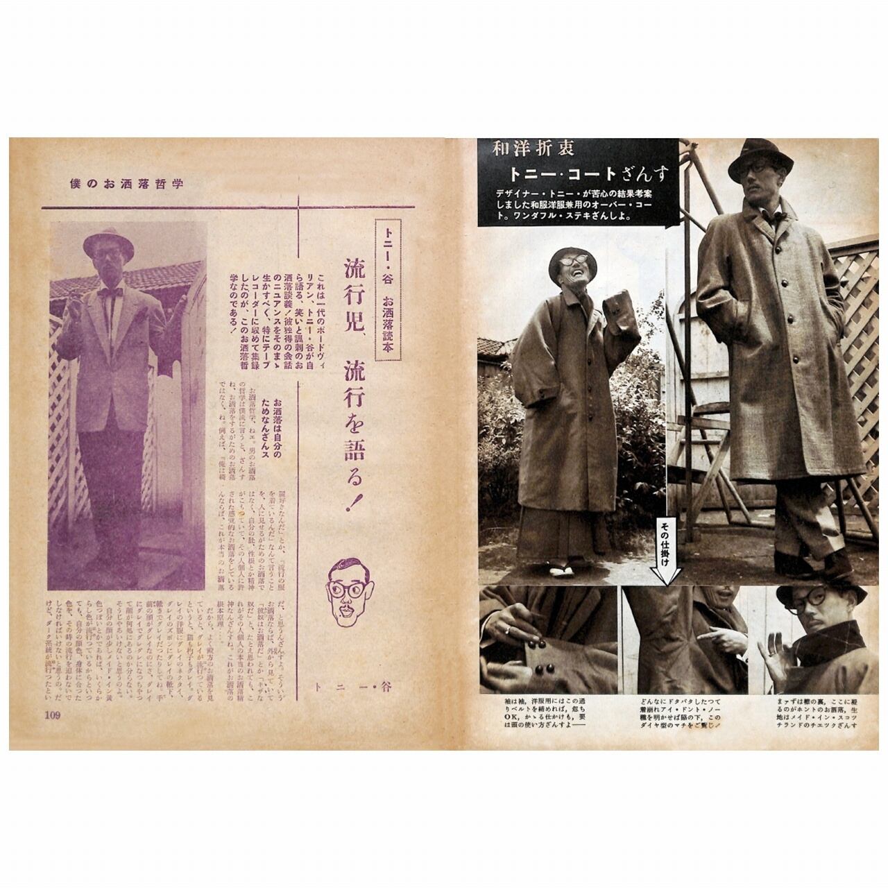 昭和25年(1950年)、『スタイル』の臨時増刊号として産声をあげた『男子專科』昭和11年(1936年)といえば、二・二六事件、日独防共協定の締結など、軍国主義へと向かう足音が高く高く響きわたりはじめていた時代、そんな時代に、おしゃれなファッション誌『スタイル』が宇野千代によって創刊された。